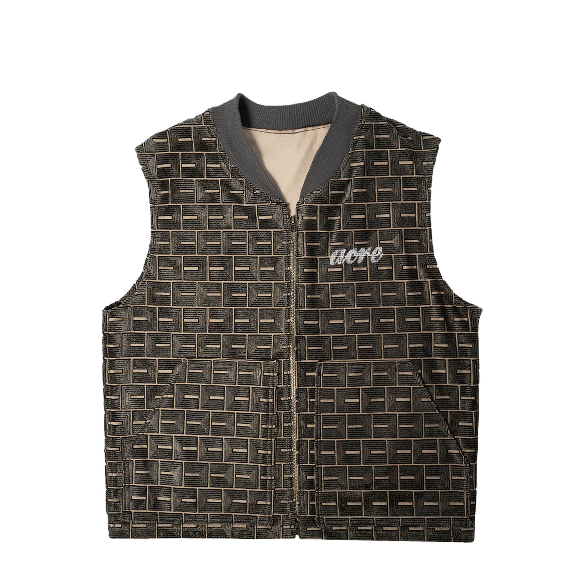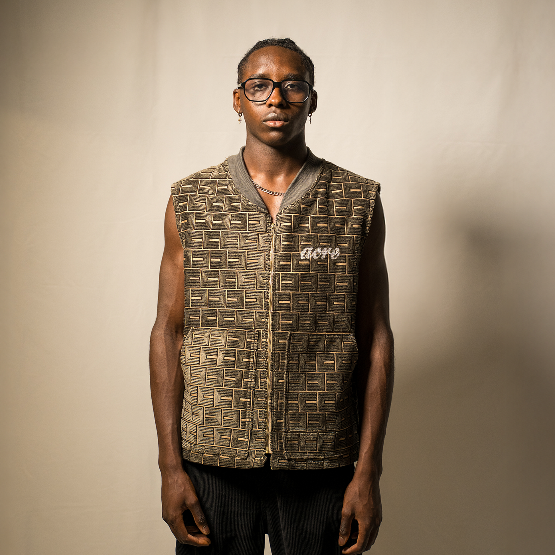 STRUCTURA explore une nouvelle forme : une veste sans manches en velours côtelé. Coupe droite, finitions brutes, allure singulière.